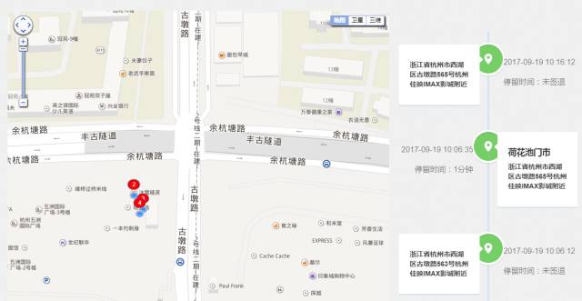 2.右側縱軸展示拜訪客戶名稱、簽到地址、具體拜訪時間、以及停留時間