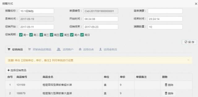 4.搭贈促銷方案時可以設置促銷商品的價格