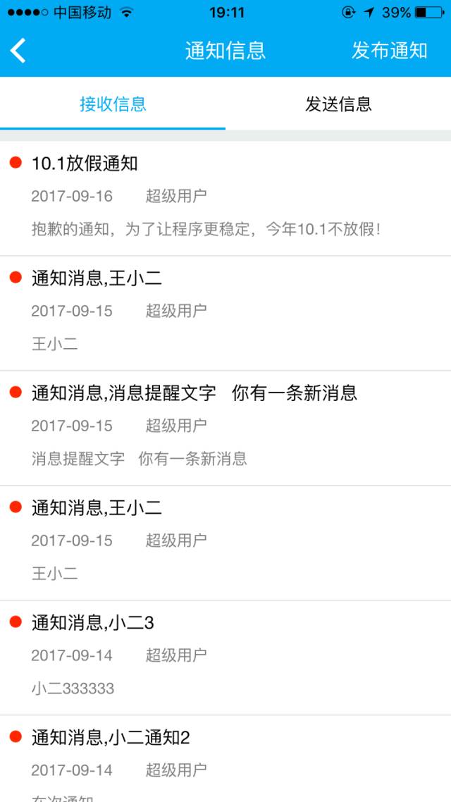 25.平臺模塊中增加通知消息,可以接受消息并可以發布消息