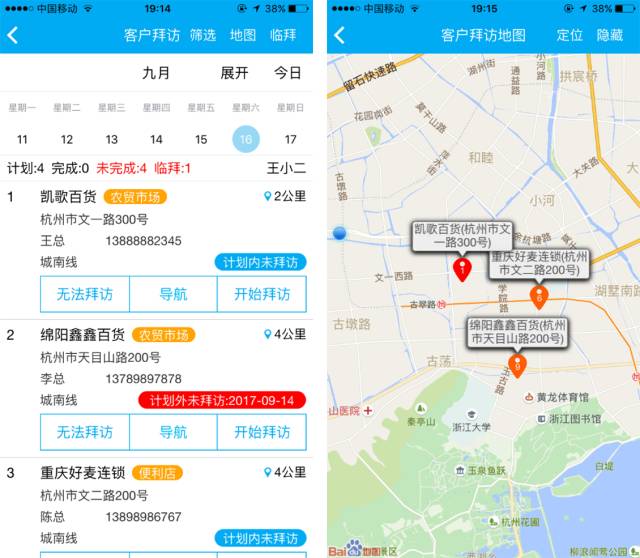 4.拜訪中可以隨時了解需要拜訪個數,已完成個數,同時可以進行客戶名稱篩選