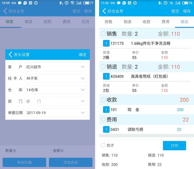 5.業務員交帳表,支持快銷行業業務快速核對帳目