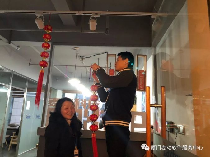 今天公司全體小伙伴一起動手,張燈結彩,除塵迎新,貼春聯~